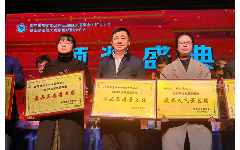 2021年3月2日,南通市旅游協(xié)會三屆四次會員大會在長壽之鄉(xiāng)——如皋召開。安惠生物科技園獲評2020年度南通旅游業(yè)“工業(yè)旅游景區(qū)獎”,安惠公司董事長陳惠榮獲2020年度南通旅游業(yè)“突出貢獻(xiàn)獎”,并當(dāng)選南通市旅游協(xié)會副會長。