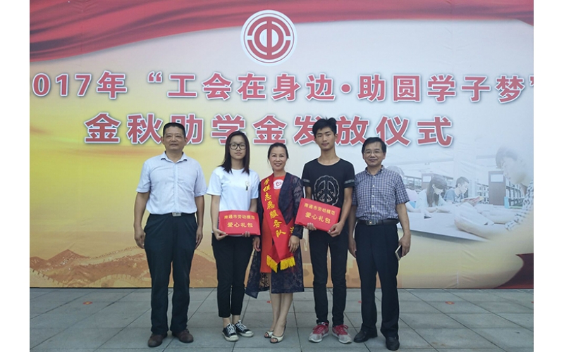 2017年8月24日上午,南通市總工會組織召開“工會在身邊 助圓學(xué)子夢”金秋助學(xué)活動。安惠公司副董事長陸漢萍出席活動。她心系寒門學(xué)子,積極響應(yīng)并加入到勞模志愿服務(wù)隊(duì)伍當(dāng)中,通過安惠愛心基金定向捐助張沙宇、秦玉婷兩位困難職工的子女,圓了他們的上學(xué)夢。她勉勵(lì)兩位學(xué)子努力學(xué)習(xí),學(xué)有所有成,回報(bào)社會;同時(shí)也承諾,安惠人將一如既往地關(guān)注、幫助到他們的成長。